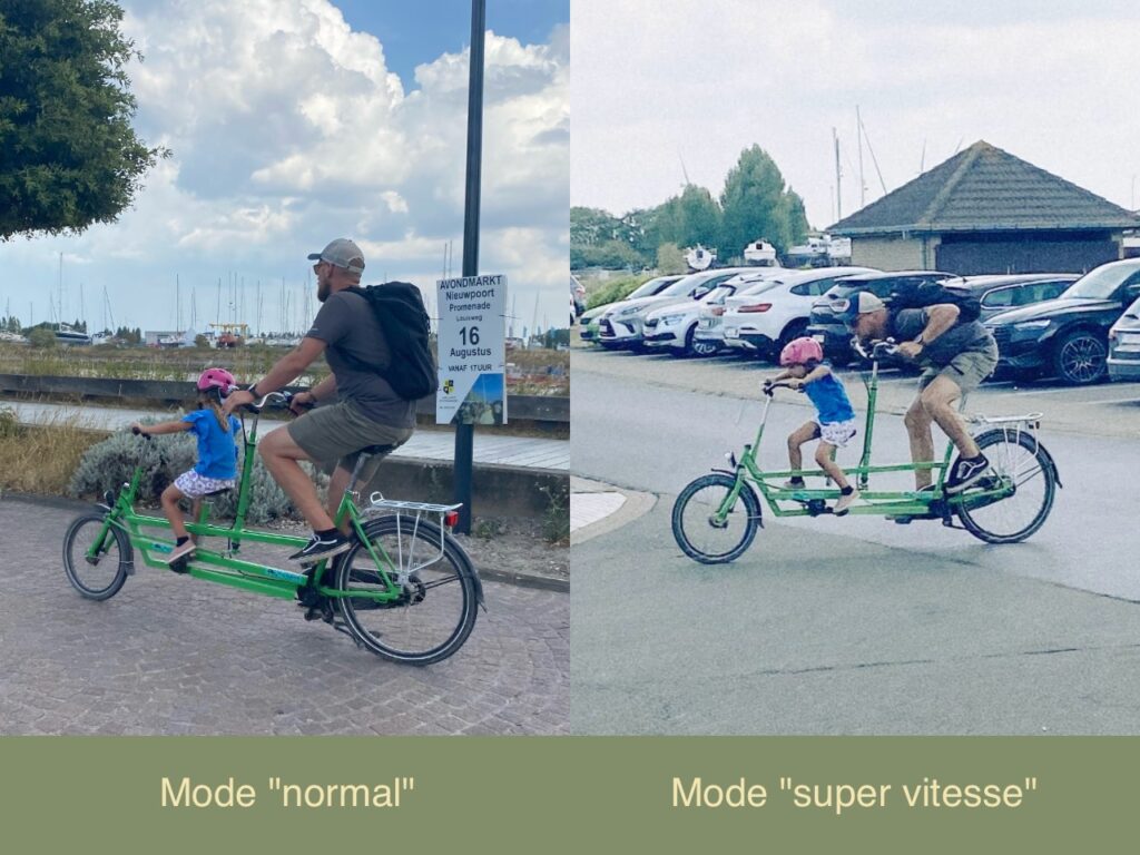 A cette époque, Salomé était dans un siège enfant mais elle a grandit donc on a commencé à louer des vélo tandem avec une place enfant devant. On a beaucoup rigolé avec ce vélo, notamment « avec le mode super vitesse ».
