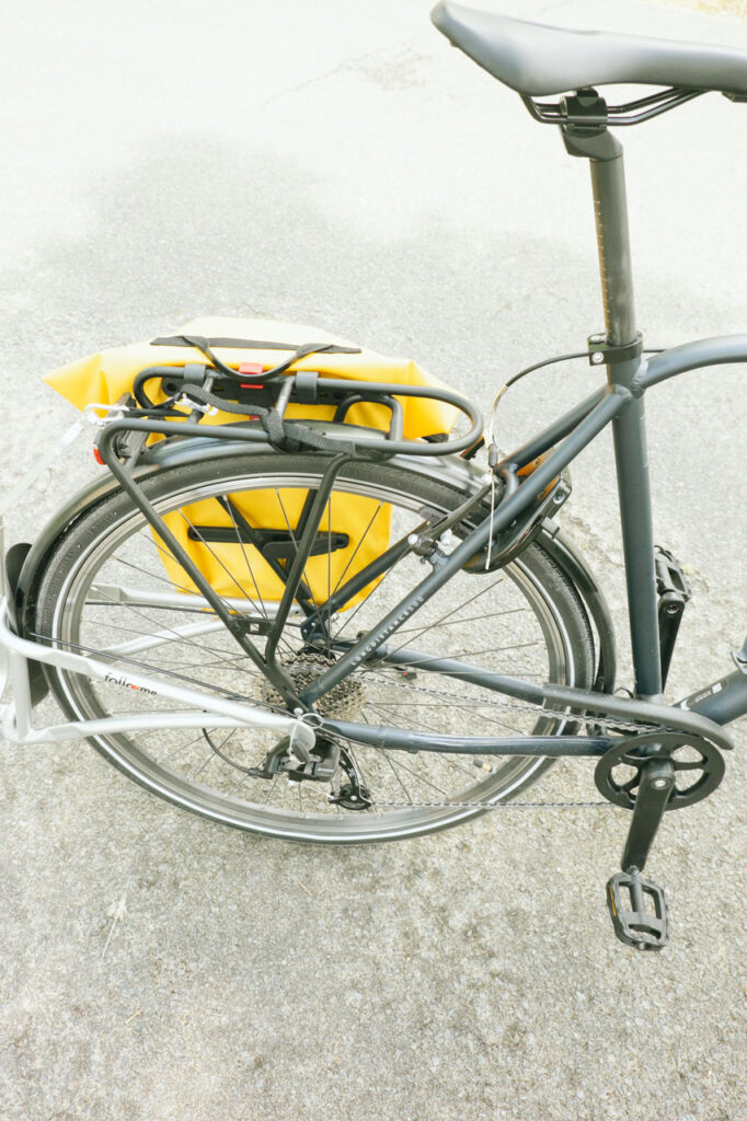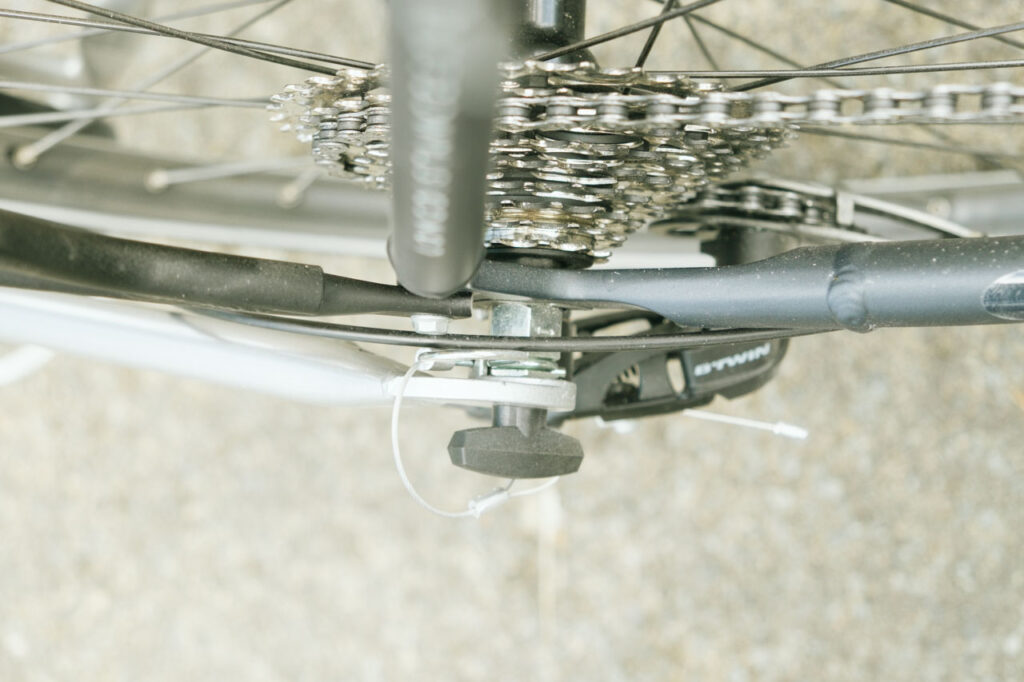 Au moment où j’écris ces lignes, je dois avoir roulé 200 kilomètres avec ce vélo. Et je n’ai globalement aucun reproche à lui faire sauf son système de fixation des roues. Les 2 roues (avant/arrière) sont fixées avec deux axes à boulons. Il faut donc une clé pour démonter les pneus en cas de crevaison, c’est un peu pénible mais quand on le sait, ce n’est pas non plus un drame.